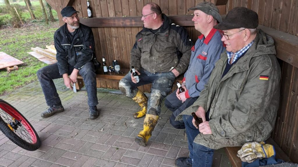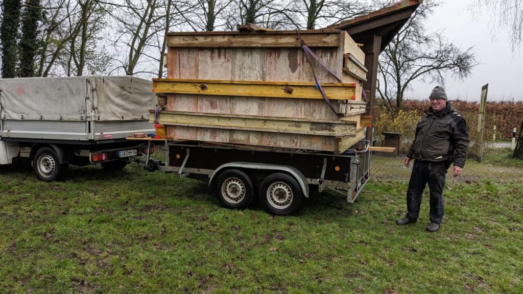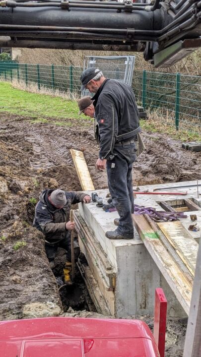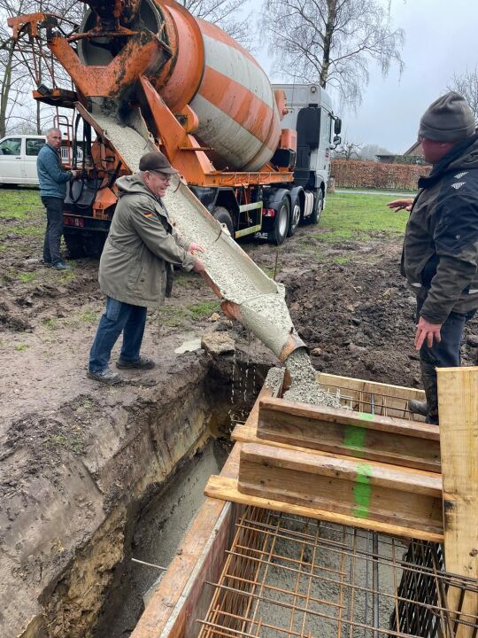 Die Arbeiten zur Errichtung der neuen Vogelstange schreiten voran. Das Fundament wurde von fleißigen Helfern fertiggestellt. Zuerst wird mal ein großes Loch ausgehoben damit die von Betonbauermeister Markus Schlaut vorgefertigte Schalung ihren Platz hat. Viel Stahl als Bewehrung. Das Fundament muss ja lange halten und eine Menge tragen. 2 Tage später konnte das Fundament ausgeschalt werden. Es gab zwar noch kein Richtfest, aber ein Fläschchen Bier hatte man sich allemal verdient.