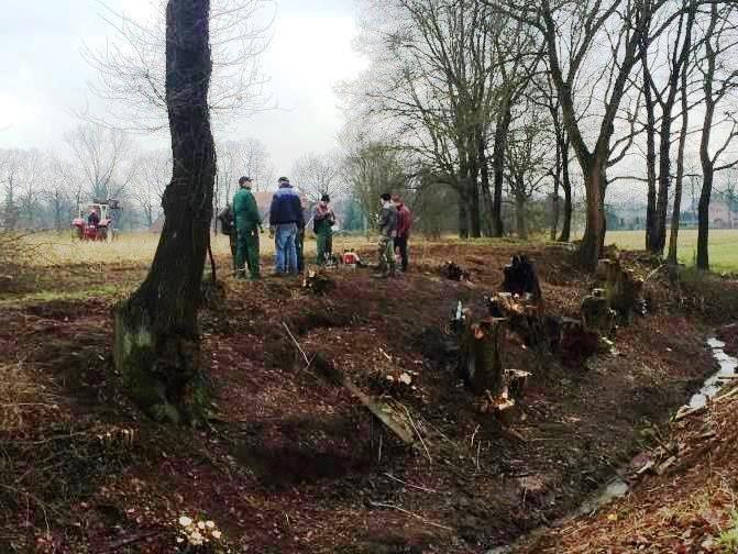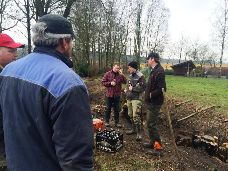 Nachdem bereits am Donnerstag eine Abordnung Börnster Schützen um unsere Ehrenmitglieder den Zaun im Verlauf des Bachs entfernten, trafen sich am Samstag früh um 8 Uhr rund ein Dutzend Mitglieder, um den für weitere Arbeiten am Bachlauf erforderlichen Heckenrückschnitt durchzuführen. Mit Hilfe unseres Königs, eines Traktors und etlichen Motorsägen wurde dem Gehölz zu Leibe gerückt. So konnte noch vor Mittag Vollzug vermeldet werden und man sah rund ums noch brennende Feuer in zufriedene, tlw. auch erschöpfte Gesichter.