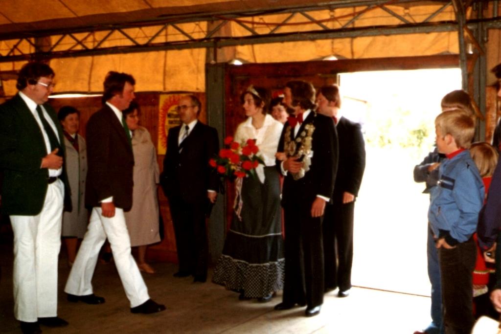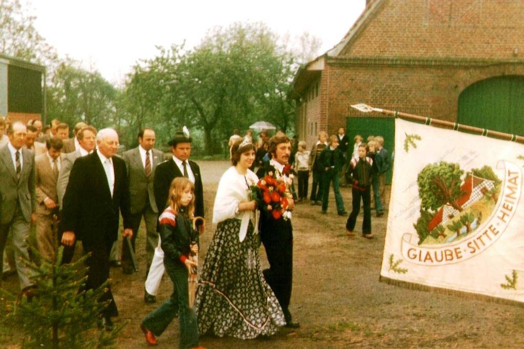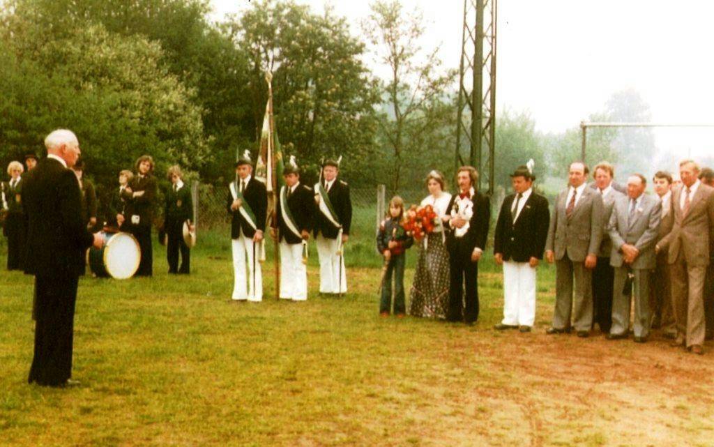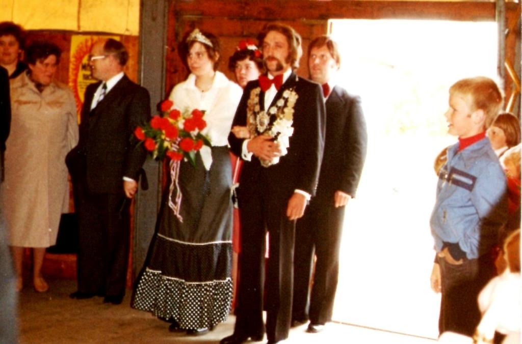 Das diesjährige Schützenfest wurde am 10., 11., und 12. Juni abgehalten. Trotz Fußball-Weltmeisterschaft war bereits am Samstag, den 10. ein reger Besuch zu verzeichnen. Einigen Mitgliedern waren noch am Sonntag die „Strapazen“ ins Gesicht geschrieben. Dieses war jedoch kein Grund, dem Vogel nicht über Kimme und Korn zu Leibe zu rücken. Ein besonders gutes Auge hatte sich Eduard Reuver bewahrt, seinem gezielten Schuß mußte sich der hartnäckige Rest eines ehemals stattlichen Vogels, der wie schon viele Jahre von Schreiner Berning gefertigt wurde, geschlagen geben. Zur Mitregentin erwählte sich der neue König Renate Düppmann.