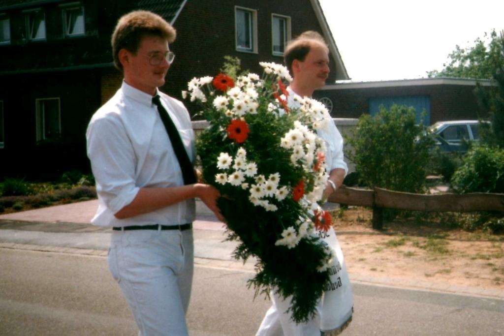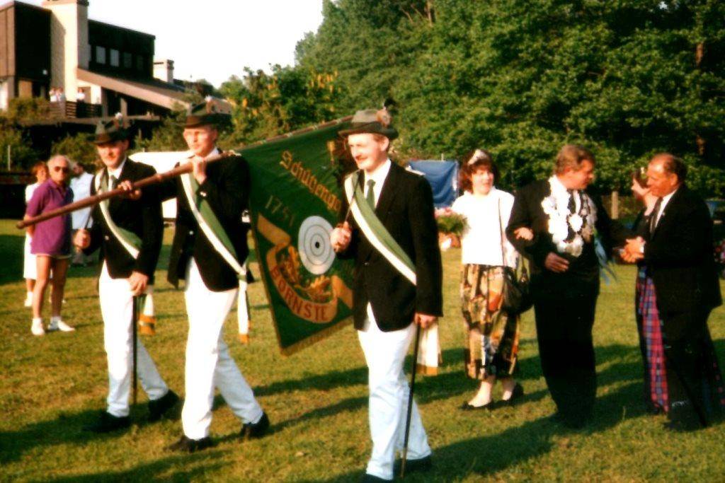 Als treffsicherster Schütze in den Börnster Reihen stellte sich Vorstandsmitglied Paul Brambrink heraus, der mit dem 300. Scharfen Schuß um 18.33 Uhr den entscheidenden Königstreffer landete und von seinen Schützenbrüdern unter dem Jubel der zahlreichen Zuschauer geschultert wurde.
