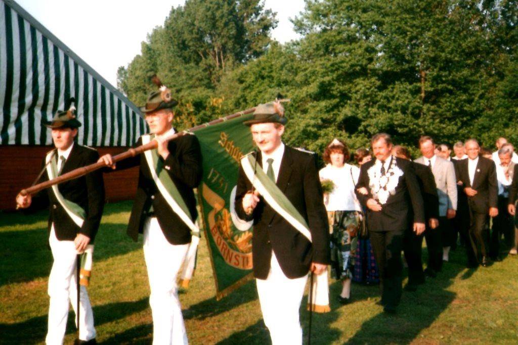 Fahnenschlag und Königstanz läuteten den festlichen Königsball am Sonntag abend im Festzelt an der alten Börnster Schule ein, bei dem die Stimmungswellen bis in die frühen Morgenstunden hochschlugen.