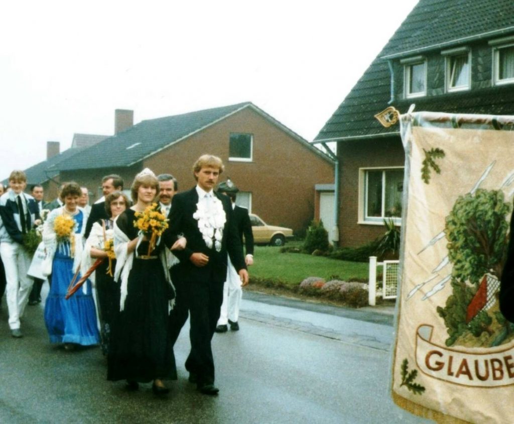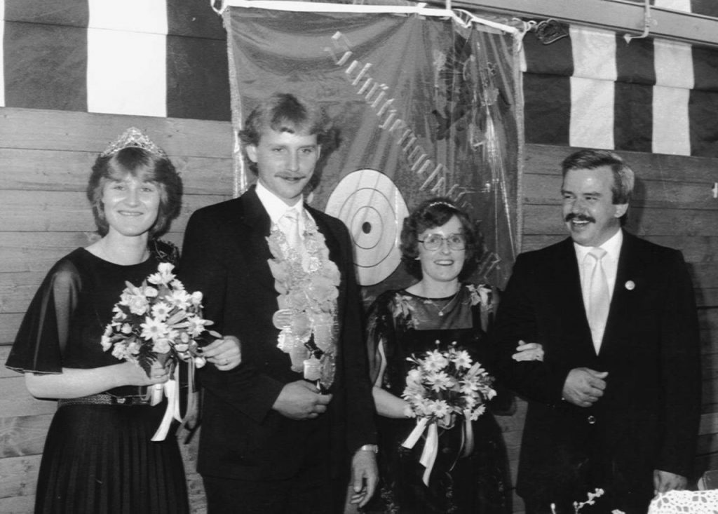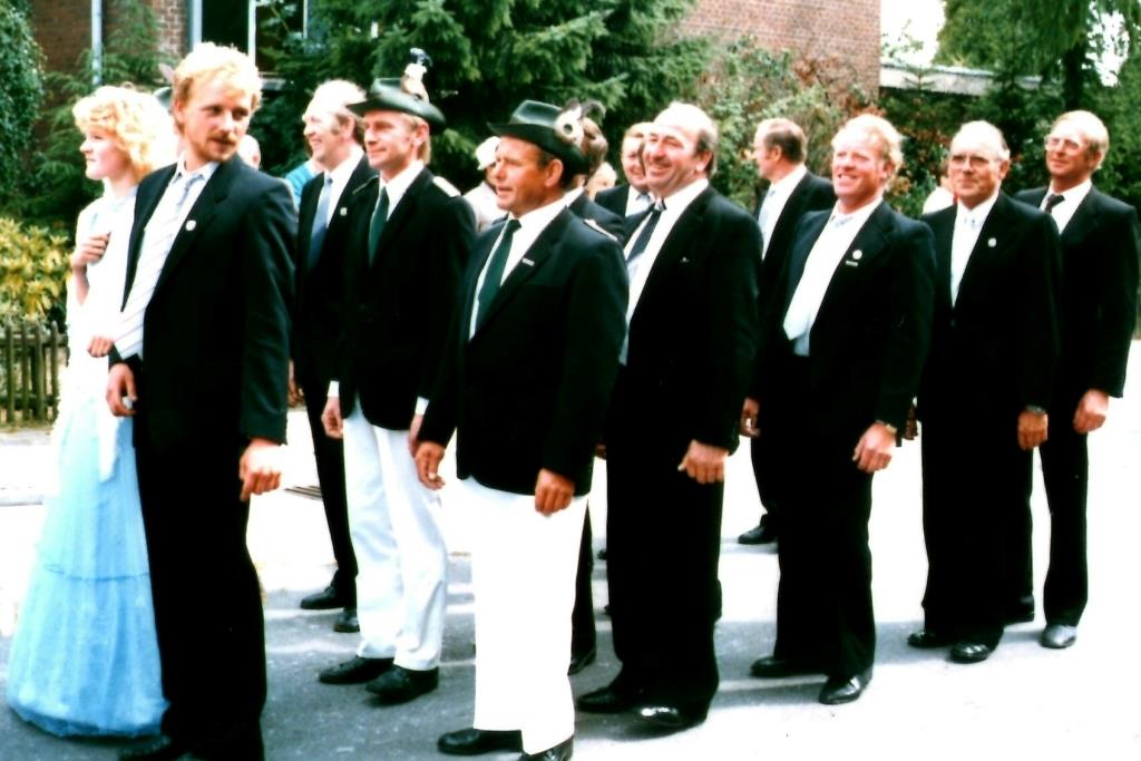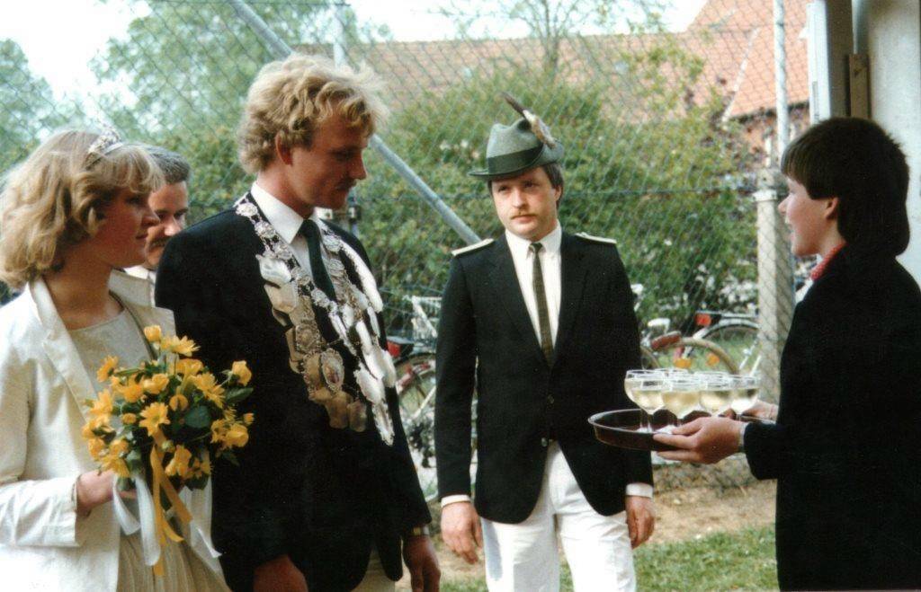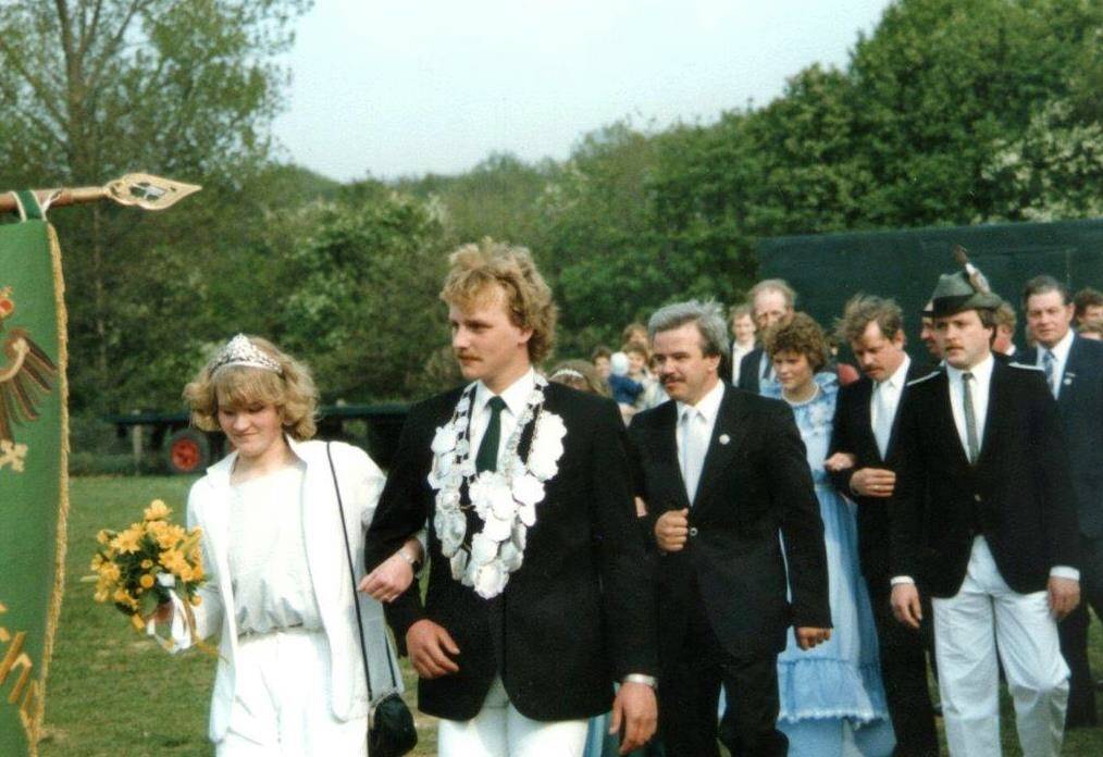 An der Vogelstange herrschte lebhafter Andrang, und gegen 16.15 Uhr fiel der Rest des hölzernen Vogels. 500 Schuß mit Kleinkaliber waren abgegeben worden, denen rund 45 dickere Geschosse folgten. Die Krone hatte Franz-Josef Schürhoff abgeschossen, den Reichsapfel Hartmut Bürgel, den linken Flügel Albert Feldmann, den rechten Flügel Heinz Potthoff und das Zepter Willi Wischhörster.
