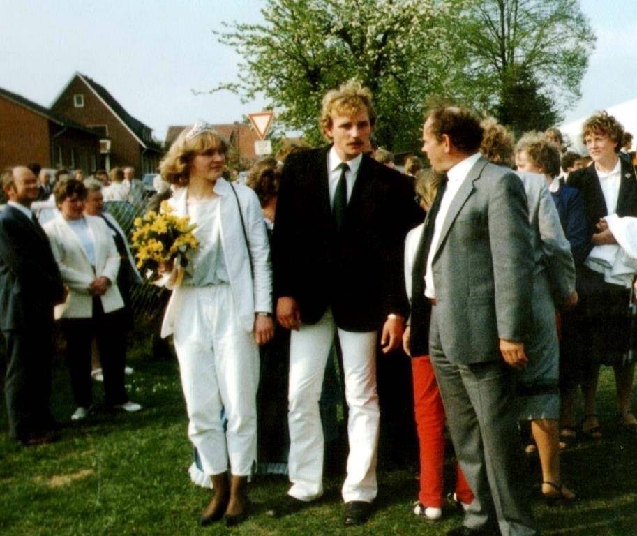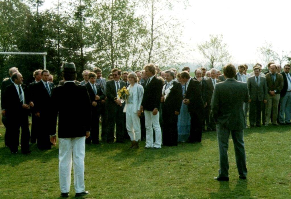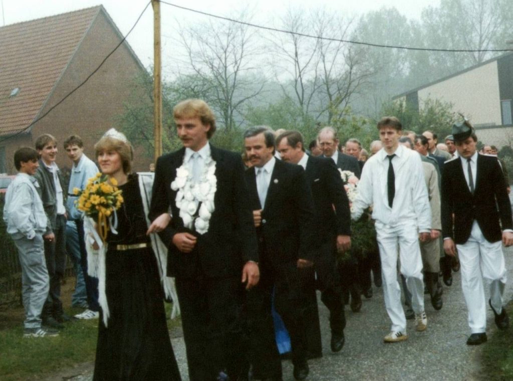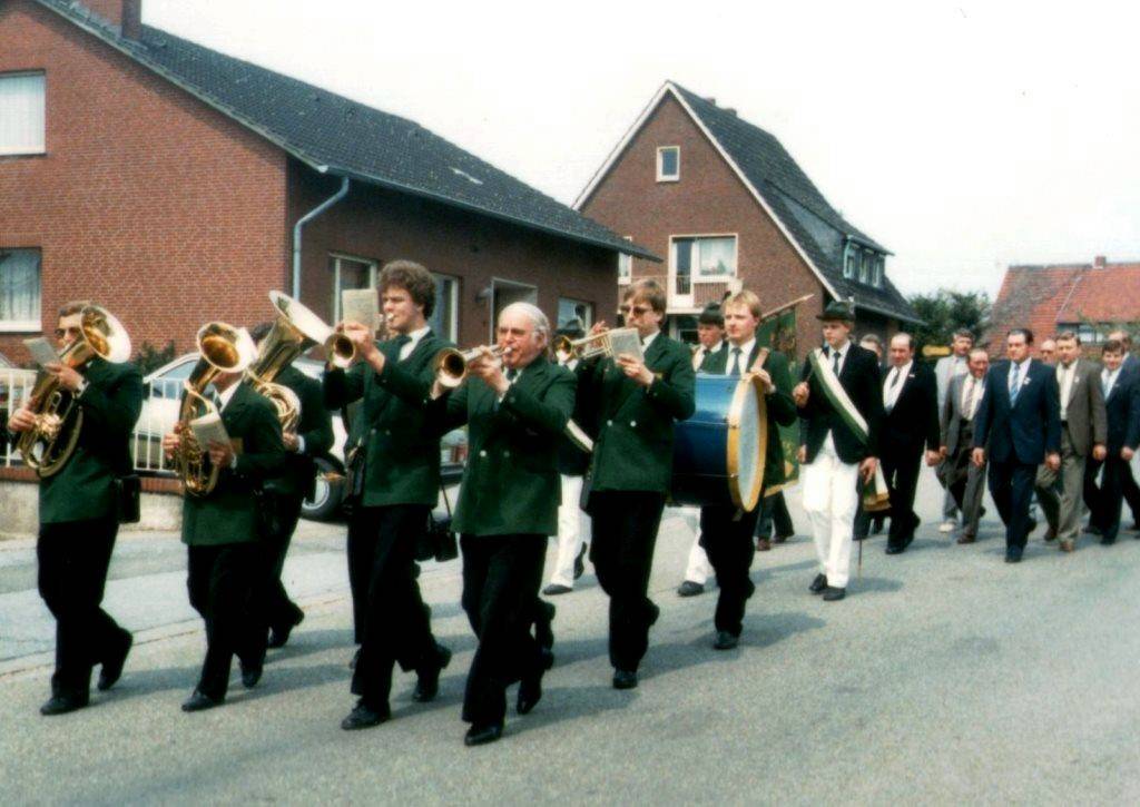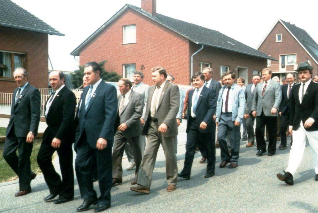 An der Vogelstange herrschte lebhafter Andrang, und gegen 16.15 Uhr fiel der Rest des hölzernen Vogels. 500 Schuß mit Kleinkaliber waren abgegeben worden, denen rund 45 dickere Geschosse folgten. Die Krone hatte Franz-Josef Schürhoff abgeschossen, den Reichsapfel Hartmut Bürgel, den linken Flügel Albert Feldmann, den rechten Flügel Heinz Potthoff und das Zepter Willi Wischhörster.