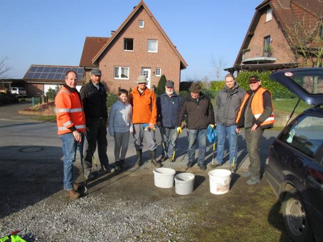 Auch in diesem Jahr trafen sich einige Börnster Schützen am Samstag um an der Aktion „Sauberes Dülmen“ teilzunehmen. Bewaffnet mit Greifzangen und Müllsäcken machte man sich auf den Weg Böschungen und Straßenränder von achtlos weggeworfenen Müll und Unrat zu befreien.