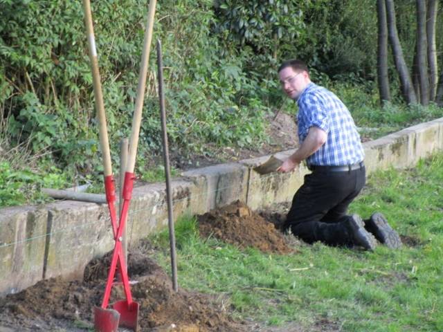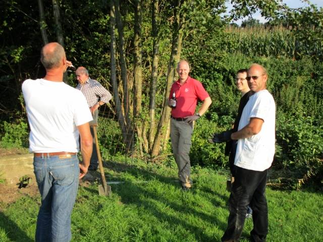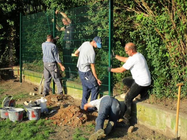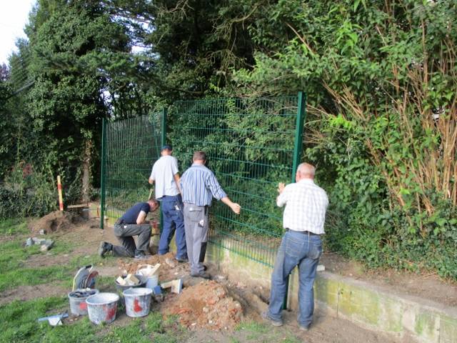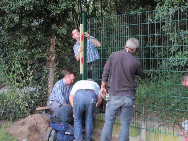 Das erste Teilstück des neuen Zauns am Festplatz wurde in Angriff genommen. Begonnen wurde auf der Grenze zum Grundstück von Frau Maria Lütkenhaus, die grosszügig die Materialkosten des Zauns übernimmt. Herzlichen Dank dafür!