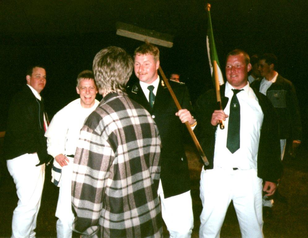 Die letzte uns bekannte Hosenverbrennung datiert aus einer Zeit um das Jahr 2001 nach Christi Geburt. Hierzu rotten sich die letzten verbliebenen gehfähigen Schützen zu tiefstnächtlicher Stunde des letzten Schützenfesttages zu einem Antreten zusammen. Ein Hexenbesen und die entsprechende Beflaggung darf dabei nicht fehlen.