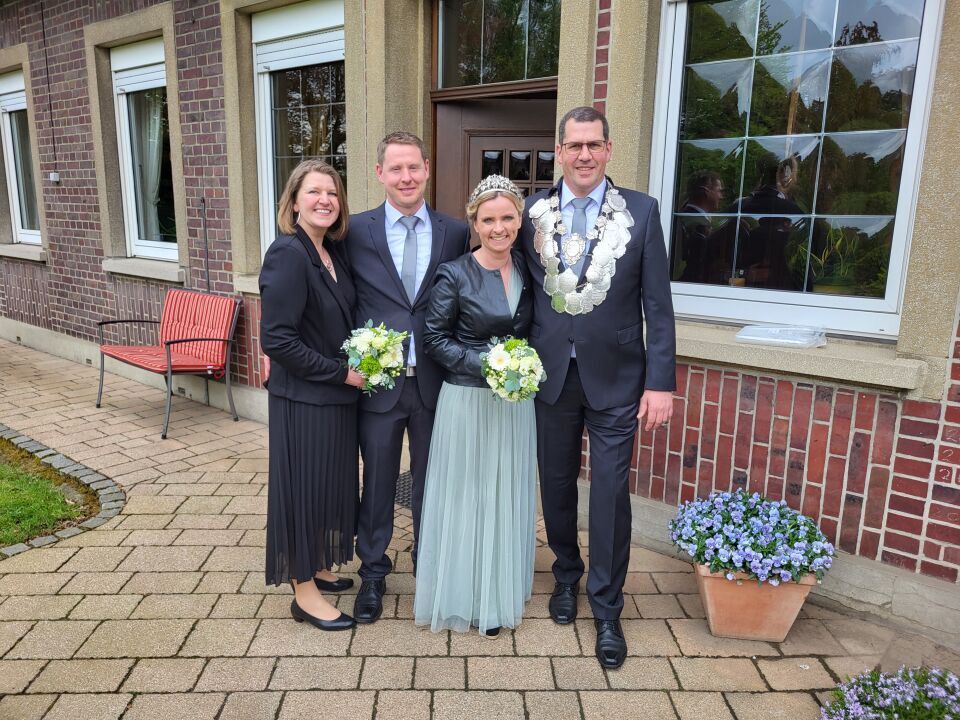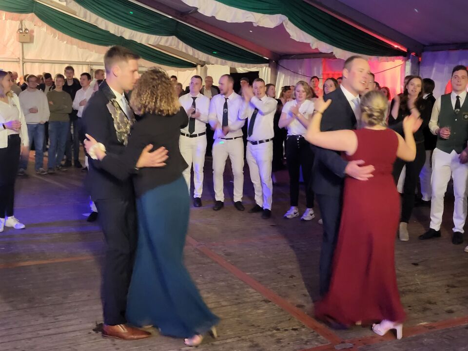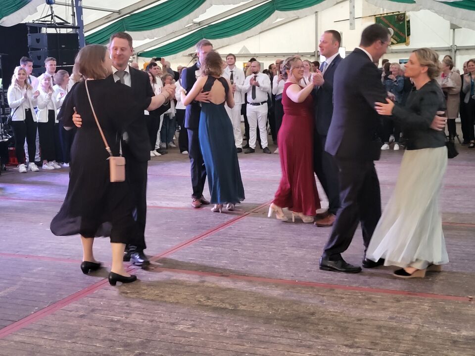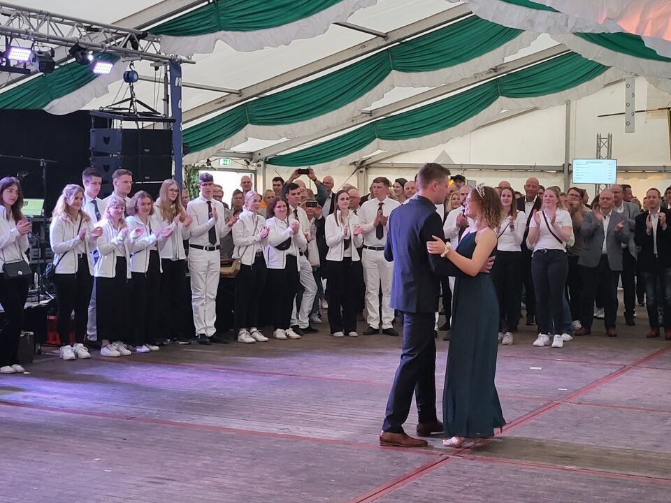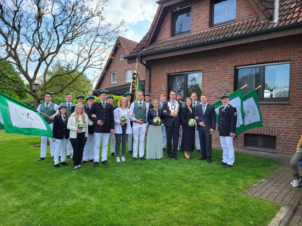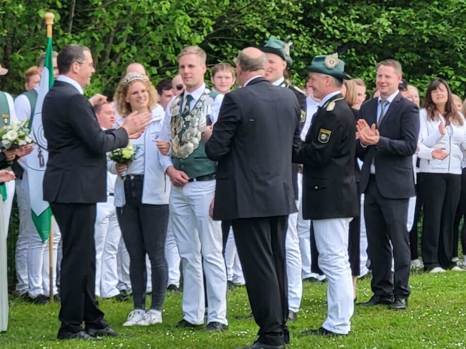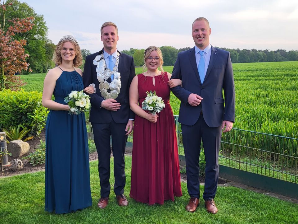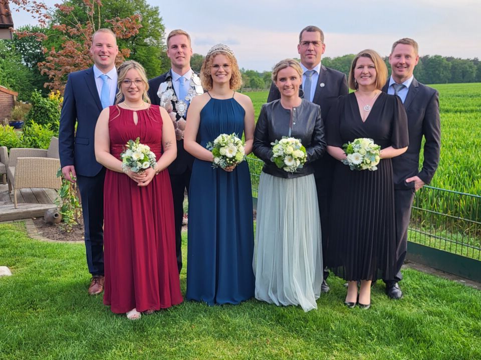 Einer kann es nur werden und heute hatte Florian das Quäntchen mehr Schussglück und ist neuer König der Börnster Schützengesellschaft. Zur Königin erkor er Gesa Kuhlbusch. Vorsitzender Bernhard Gövert bedankt sich beim scheidenden Königspaar und übergibt die Königskette von Carsten an die neue Majestät Florian. Im Zelt wird noch das Gedicht aufgesagt und ein Glas Sekt getrunken, dann heisst es „auf der Stelle weggetreten“.