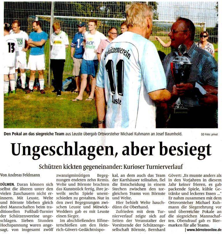 Im abschließenden Elfmeterschießen um den Heinrich-Gövert-Gedächtnispokal, an dem auch das Team der Karthäuser teilnahm, fiel die Endscheidung in einem Stechen zwischen den torgleichen Teams von Börnste und Welte. Hier behielt Welte hauchdünn die Oberhand.