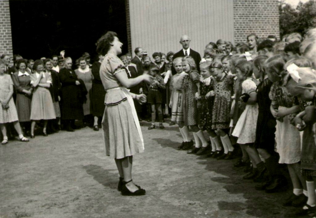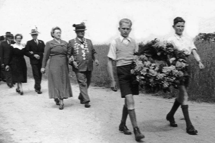 Am zweiten Schützenfesttage fand sich die gesamte Bauerschaft an ihrem schönen Kriegerdenkaml ein, um der Gefallenen und Vermißten zu gedenken. Nach einem von drei Schuljungen vorgetragenen Gedicht nahm Lehrer Ridder die Gefallenenehrung vor und legte unter den Klängen des Liedes vom guten Kameraden einen herrlichen Kranz am Ehrenmal nieder. Ein kurzes Gebet für unsere Helden beschloß diese ergreifende Feier.