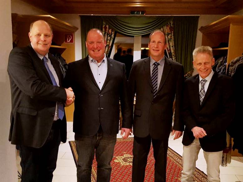 Die in ihren Ämtern bestätigten Vorstandsmitglieder Bernhard Krunke, Norbert Lücke und Markus Schlaut nahmen die Gratulation des Vorsitzenden Bernhard Gövert entgegen.