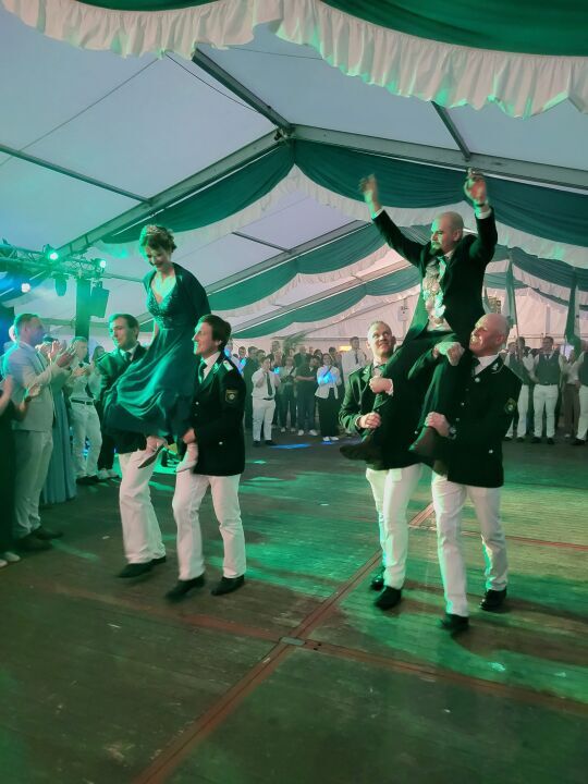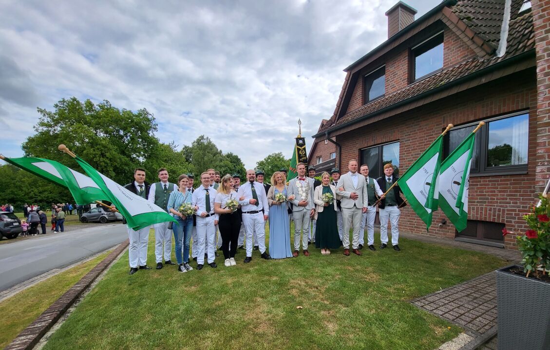 Um Punkt 16 Uhr hat Max Wieschhörster den Vogel in Börnste abgeschossen und die Königswürde 25 Jahre nach seinem Vater errungen.