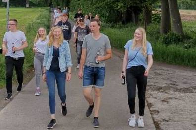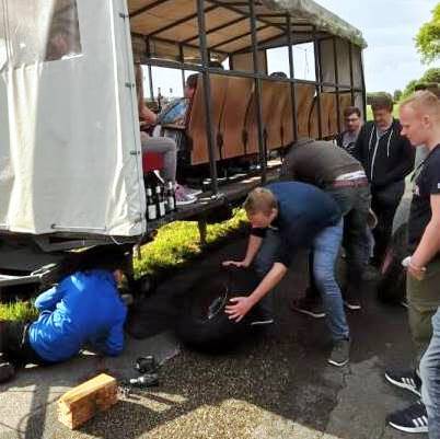 Augen auf beim Navikauf! Viele Wege führen nach Börnste, einer sogar über Lette. Da hiess es: Alles absteigen. Was ist passiert? Einem ging die Luft aus. War doch gut das man sich so früh auf den Weg gemacht hat. Warten auf ein Ersatzrad, Radwechsel. Nur noch eine Woche bis zum Fest! Das Jungschützenkönigspaar macht sich zu Fuß auf den Weg. Viele schließen sich an, können nach erfolgter Fahrzeugreparatur aber wieder zusteigen.