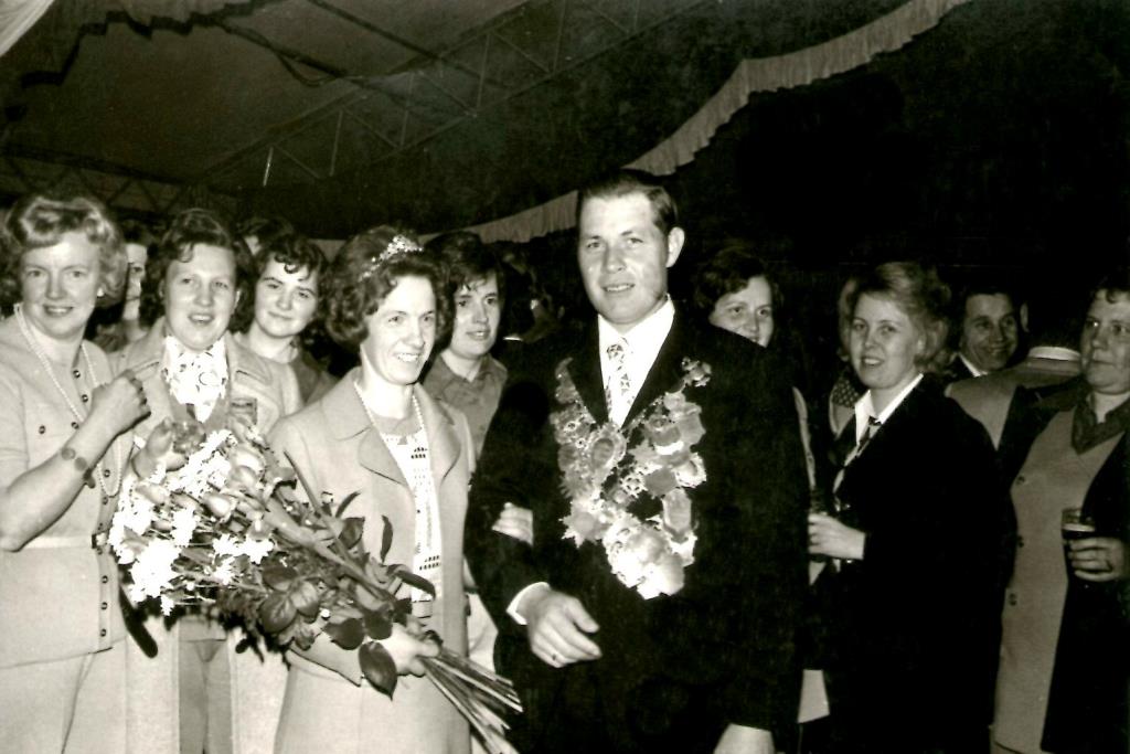 Zum Schützenfest 1974 ist noch hinzuzufügen, daß zum Königsschießen das Königspaar abgeholt wird. Wohnt das Paar östlich der Borkener Str., wird es vom Hofe Gövert oder südlich der Borkener Str. vom Hofe Brambrink abgeholt. Im Jahre 1974 konnte Bernhard Brambrink zum Schützenfest wegen des Todes seines Vaters nicht antreten. Ewald Schlaut und Paula Düpmann haben stellvertretend die Königspflichten für das Schützenfest übernommen.