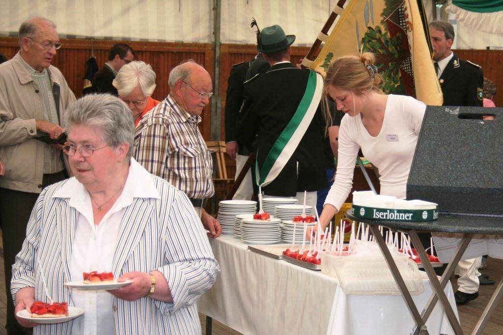 Am Festzelt gab es einen Fahnenschlag zu Ehren des alten Königspaares. Nach dem Kommando „Auf der Stelle weggetreten“ begann das Königsschießen, das F. J. Schürhoff eröffnete. Beim Königsschießen machte Bernhard Krunke dem Vogel nach dem 191. Schuss den Garaus. Als Königin erkor er sich Margorett Wessing. Das Ehrenpaar bilden Ulrike Eisbecker und Bernd Wessing. Bernhard Krunke schaffte es bereits zum dritten Mal, den Vogel abzuschießen.