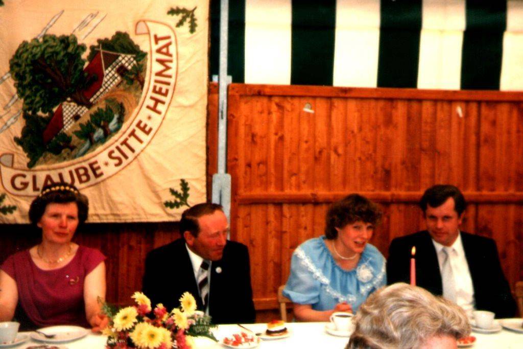 Zu diesem Kaffeetrinken begrüßte Josef Lücke auch einige Gäste, unter anderem Arno Gosepath, den Beigeordneten Karl Hullermann, Pfarrdechant Aloys Stüper und Molkereidirektor Theo Kuhmann. Heiß begehrt waren an diesm Nachmittag die Lose für die große Verlosung, die gestern im Zelt durchgeführt wurde. Auch die Musik kam nicht zu kurz, dafür sorgte in bewährter Manier eine Abordnung der Stadtkapelle Dülmen. Mit dem Festball gestern ab 20 Uhr im Festzelt endete dann das Börnster Schützenfest 1984.