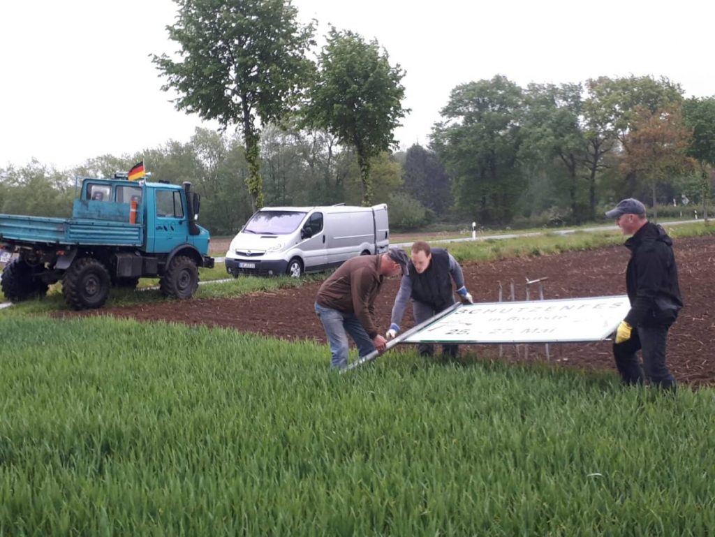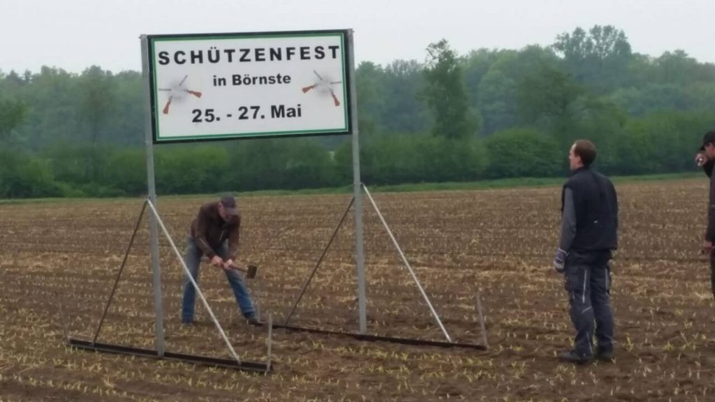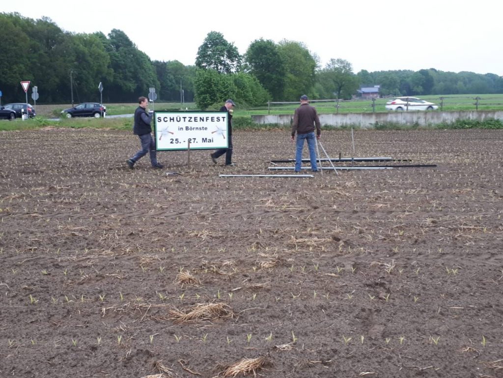 Jetzt zählen keine Ausreden mehr. Wer bis jetzt noch nicht wusste das Börnste wieder Schützenfest feiert weiß jetzt Bescheid. Grosse Schilder an der Coesfelder und Borkener Straße weisen jeden Durchfahrenden auf das anstehende Ereignis hin. Zusammen mit König Heiner Schlaut bauten einige Funktionsträger der Schützengesellschaft die Tafeln an den Ortsdurchfahrten auf.