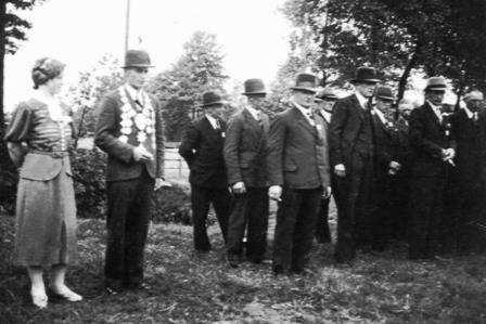 fand Sonntag und Montag auf dem Hofe des alten Königs Theodor Höynk statt und erfreute sich starker Anteilnahme, auch von Seiten der Stadt, wie dies bei siesem Schützenfest stets der Fall war. König wurde am Sonntag Josef Geilmann, der sich Fräulein Aenne Potthoff zur Königin wählte.