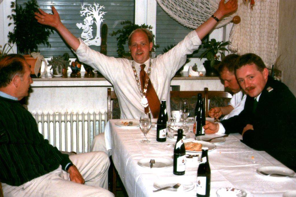 Der erste Vorsitzende der Börnster Schützen, Josef Lücke, freute sich am Samstag vor allem über den guten Besuch beim Festball, bei dem die fünfköpfige Band „Sunny Boys“ für Live-Musik sorgte. Am Sonntag mittag wurde dann der noch amtierende König Ludger Kuhmann mit musikalischer Begleitung des Musikvereins Asbeck abgeholt. Bei strahlendem Sonnenschein fand dann das längste Königsschießen in der Geschichte des Börnster Schützenvereins statt. Seit 14.50 Uhr hatten vor allem die Jungschützen immer wieder das Gewehr gegen den Vogel gerichtet, bevor schließlich dem Vorstandsmitglied Bernhard Gövert der goldene Schuß gelang.