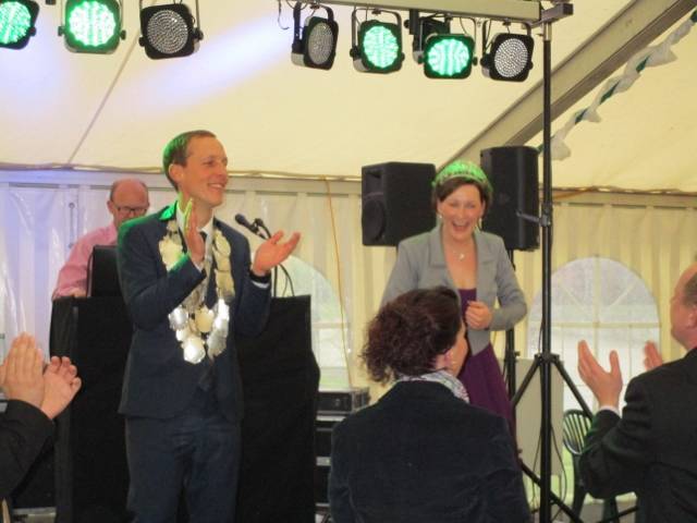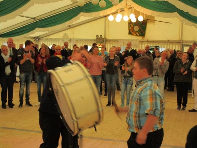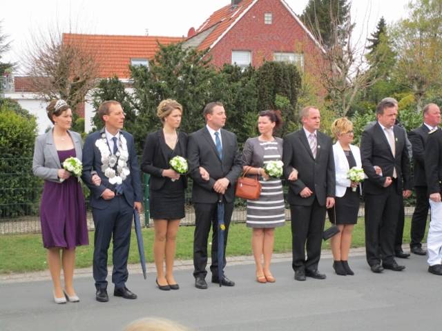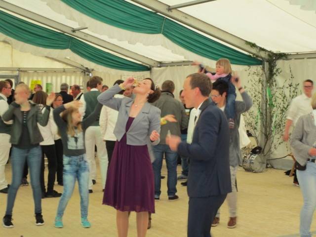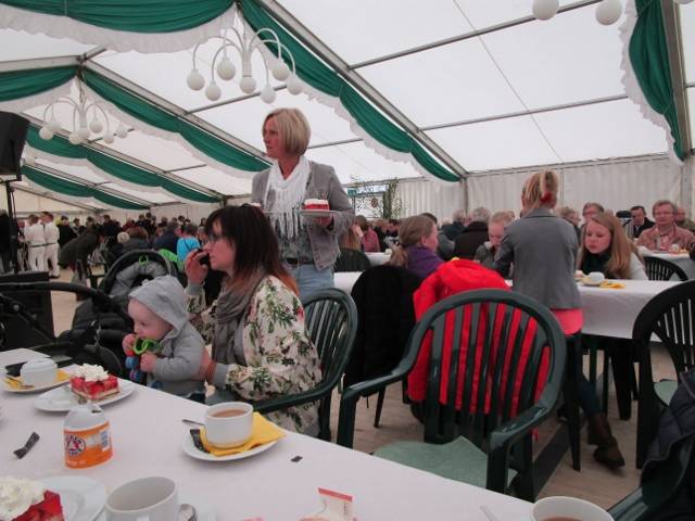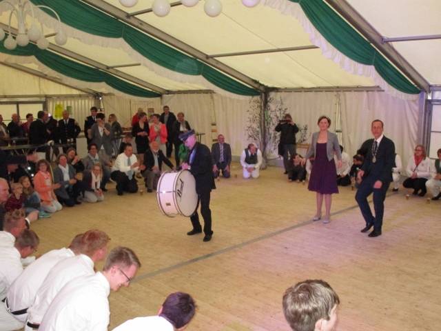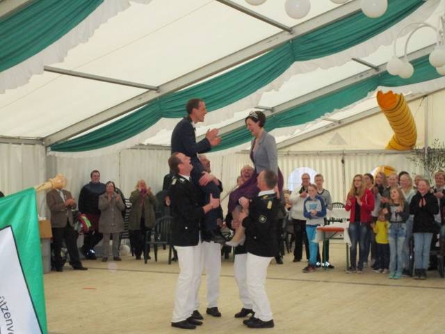 Ein Tag, der uns lange in Erinnerung bleiben wird und der doch eigentlich ganz harmlos begann. Noch nichts deutete gegen Mittag beim Herrichten der Kaffeetafel darauf hin, das es ein Nachmittag bzw. Abend werden würde, den so schnell keiner vergisst. Ein Königspaar samt Thron in Hochform und ein DJ namens Markus Mast, seines Zeichens Schützenkönig von Merfeld, sorgten dafür das die Stimmung im Festzelt kochte und ein Höhepunkt den anderen jagte. Bilder von strahlenden Majestäten und feierwilligen Untertanen en masse, unmöglich sie hier nur annähernd alle aufzuzählen. Wir versuchen es mal mit einer kleinen Auswahl.