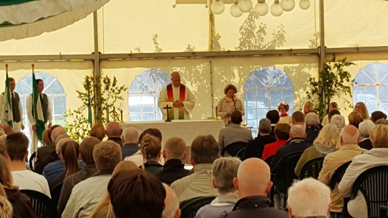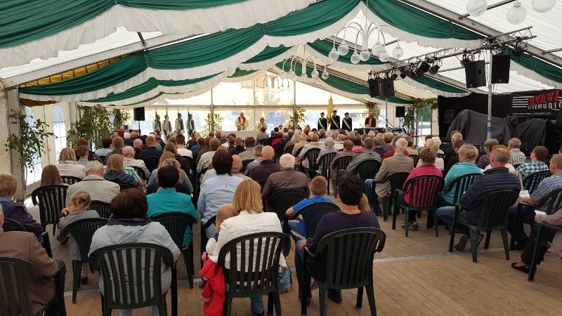 Die sehr gut besuchte heilige Messe im Festzelt bildete den Auftakt des diesjährigen Schützenfests. Im Anschluss hatte man Gelegenheit sich vor der Abendveranstaltung an Theke und Imbisswagen zu stärken.