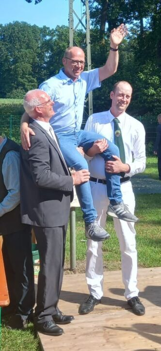 Der neue Börnster Thron mit König Michael Pelz, Königin Anne Weiling und dem Ehrenpaar Beate Pelz und Thomas Weiling