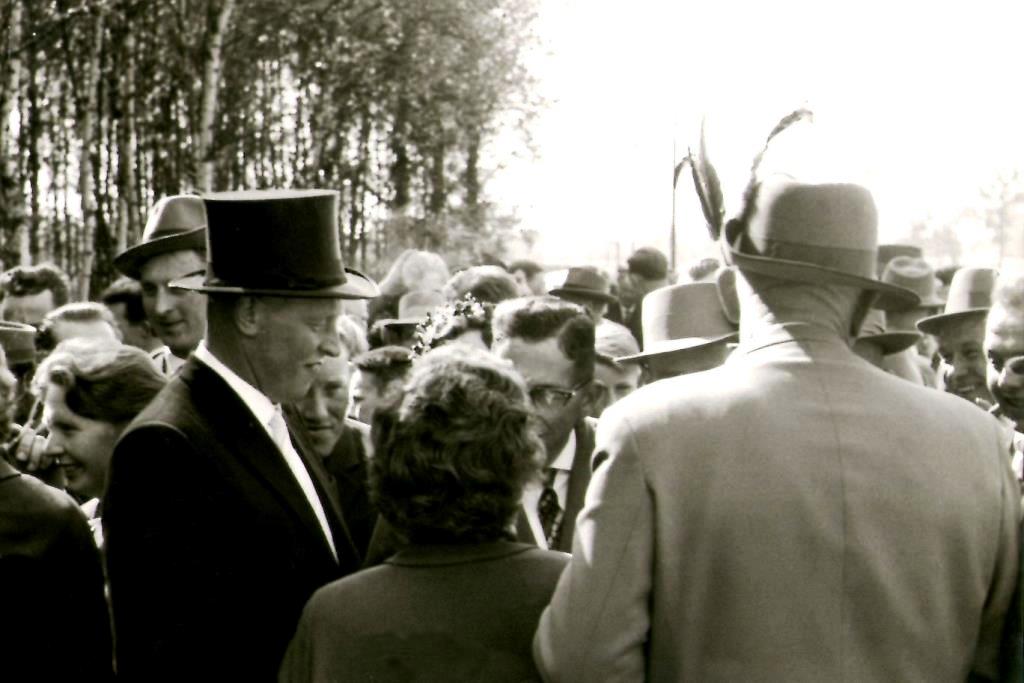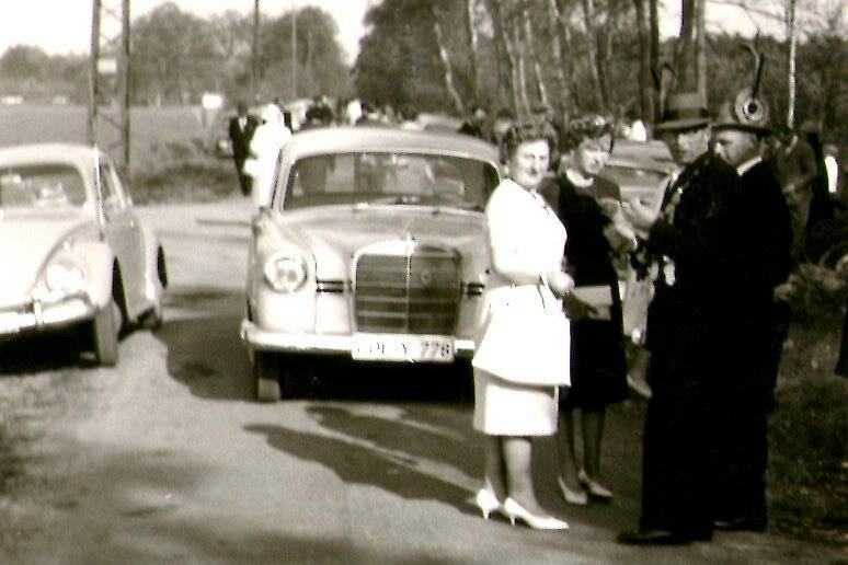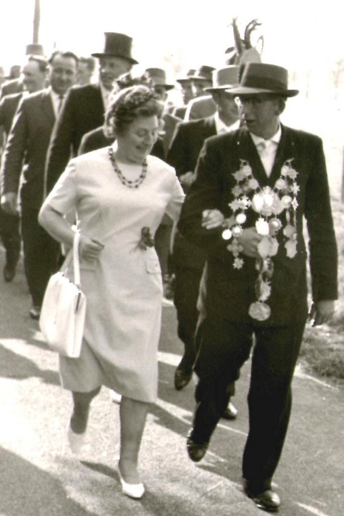 Das Schützenfest 1963 wurde wie vorgesehen am 12. und 13. Mai gefeiert. Der erste Tag begann mit einem Hochamt in der St. Viktorkirche dür die Verstorbenen und Gefallenen der Bauerschaft, welches die Schützenbrüder recht zahlreich besuchten. Um 13.00 Uhr sammelten sich die Schützen im Festzelt am Transformator zum Antreten und Abmarsch zur Vogelstange. Dort erläuterte der Vorsitzende die neuen Satzungen, die von der Versammlung fast einstimmig begrüßt wuren. Nach einem stillen Gebet, daß uns der Herrgott vor Unglück bewahren möge, begann dann das Schießen. Das schöne Wetter lockte viele Börnster, aber auch besonders viele auswärtige Gäste zu unserer Veranstaltung, so daß bald reges Treiben an der Vogelstange herrschte. Auch die Schützenbrüder waren guter Laune und schossen das erste Mal seit mehreren Jahren wieder richtig um die Wette. Herr Paul Reuver war der glückliche Schütze, der den Vogel herunterholte und wurde damit Schützenkönig 1963. Zur Mitregentin erkor er sich Fau Josef Schlätker. Nach der feierlichen Proklamation des Königspaares Rückmarsch zum Festzelt, wo der Königstanz stattfand. Am Abend konnte das große Zelt die Gäste bald nicht fassen, die alle an unserem Schützenfest teilnehmen wollten.
