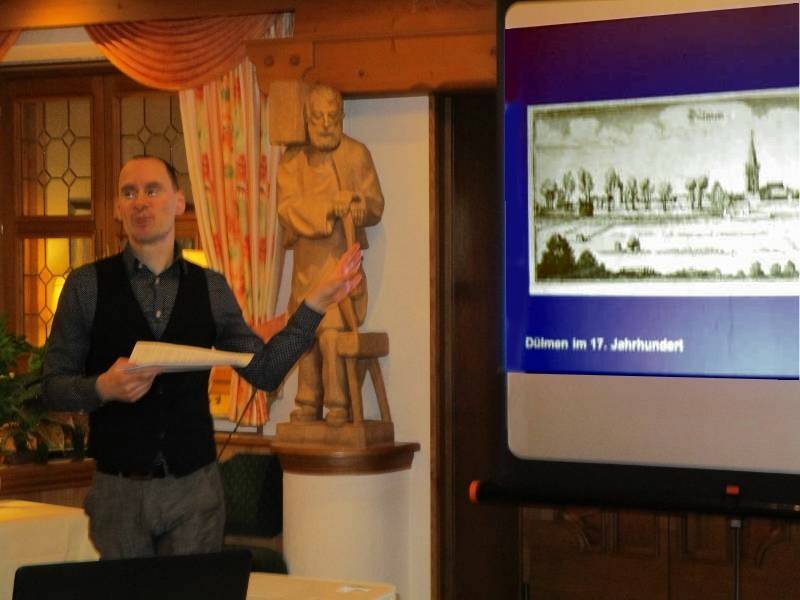 Thema des diesjährigen Nachmittags: „Das alte (und das neue) Dülmen“. Gerade heute in einer Zeit, wo sich durch den Neubau des IGZ und der Overbergplatzbebauung, das zukünftige Stadtbild wesentlich ändert lohnt es sich doch einmal auf das Dülmen der Vergangenheit zurückzuschauen. Einer der sich mit der Geschichte Dülmens bestens auskennt ist der Stadtarchivar Dr. Stefan Sudmann. Gern war er bereit mittels einer Präsentation Einblicke in die Dülmener Historie zu geben. Dafür auch von dieser Stelle noch einmal vielen Dank.