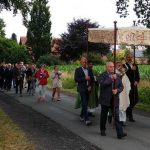Nach der Messfeier zogen die Börnster, Fahnen und Kreuz voraus, gefolgt von Frauen und Kindern, dem Baldachin und den Männern vorbei an Feldern in der näheren Umgebung.