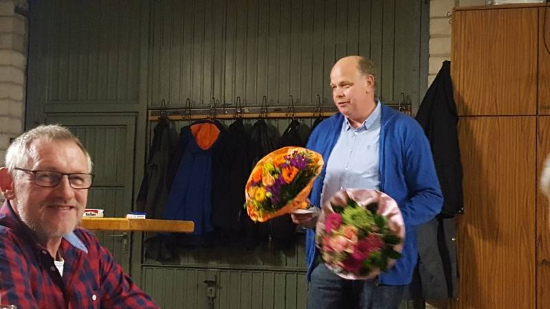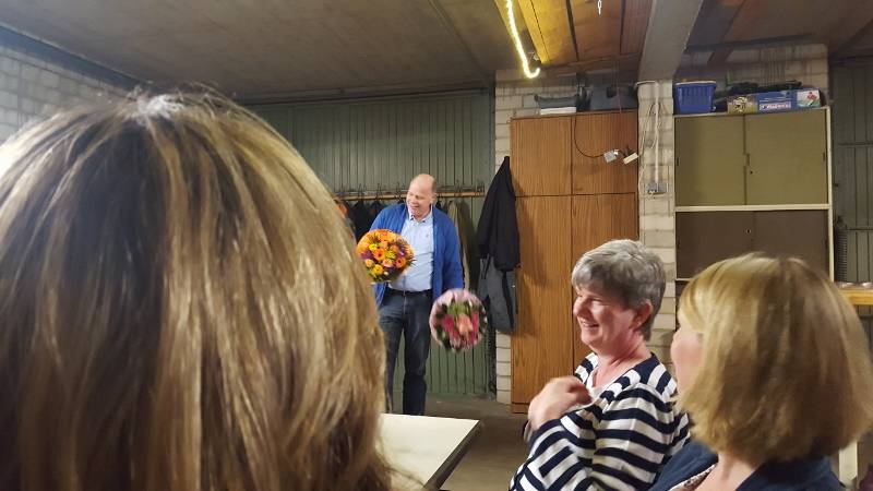 Auflösung: die Blumen überreichte unser Vorsitzender Bernhard Gövert den Gastgeberinnen Regina und Gitti Lücke als kleines Dankeschön für die jahrelange Gastfreundschaft und damit verbundene Mühe.