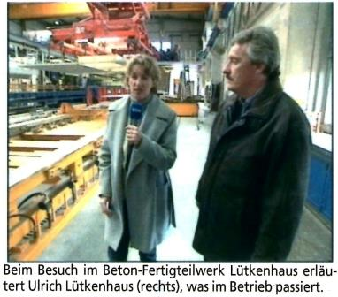 Das WDR-Team macht noch einen Dreh im Fertigbetonwerk Lütkenhaus und im herzoglichen Teichgut, und dann ist die Sache auch schon passiert. Schließlich hat der Beitrag ja nicht mehr als 3:30 Minuten. Aber immerhin.