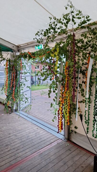 2. Mai: Das Zelt steht schonmal, jetzt noch etwas dekorieren und die Sause kann starten.