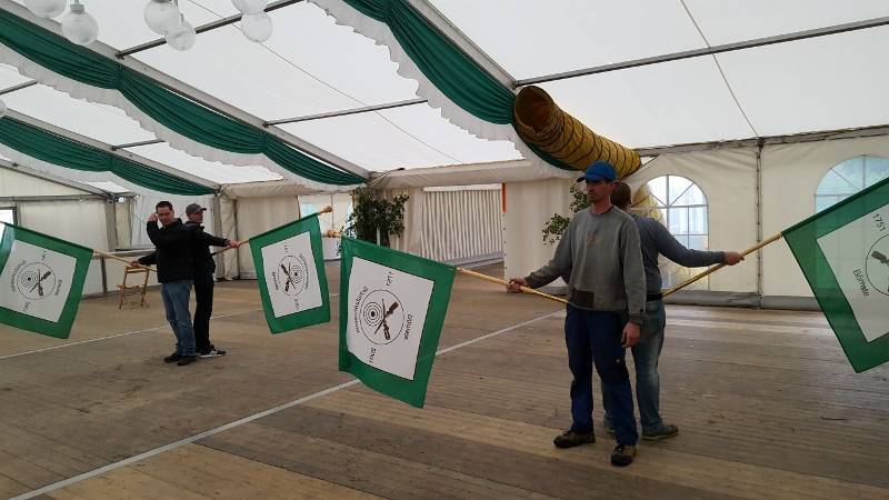 Auf unsere Jungschützinnen und Jungschützen können wir uns verlassen. Zahlreich sind sie erschienen und verpassten dem Zelt mit frischem Birkengrün den letzten Schliff.